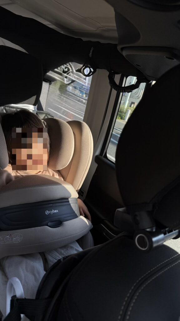 我が家は長距離ドライブをする機会が多いので「果たして長時間寝られるのか?」が本当に心配だったのですが、リクライニング機能があるおかげが初めて乗った日からしっかり寝てくれました。