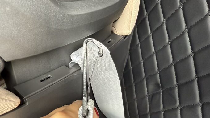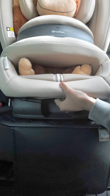 そのまま後ろへ回して、ロックをかけるところ(ISOFIXのような場所)に引っ掛けました。