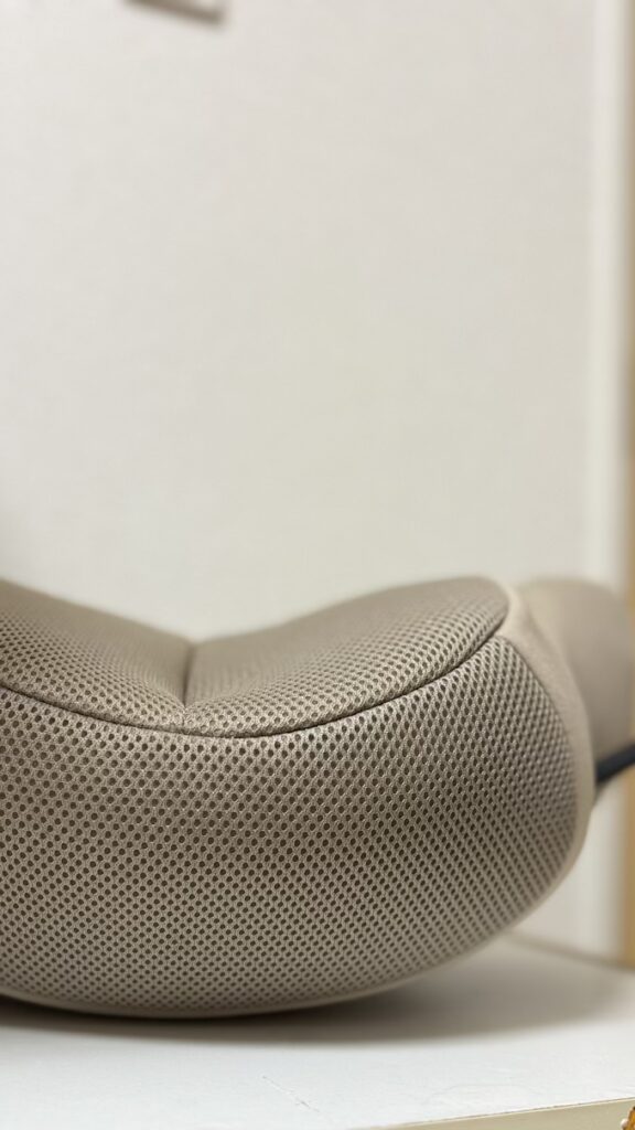 しかもヘッドレスト部分にもリクライニングがあるので後ろにしっかりと寄りかかることができ、前に倒れてきません。